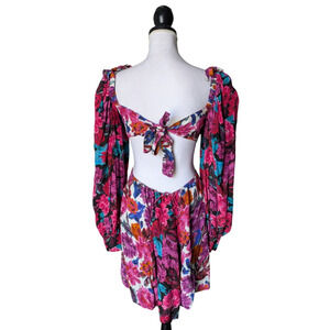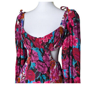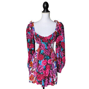 For Love & Lemons Scarlett Pink Floral Print Open Back Sweetheart Cutout Dress M