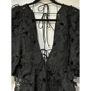 For Love & Lemons Serena Lace Mini Dress Black Size Medium NWT Floral Embroidery