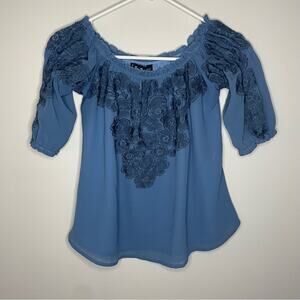 For Love & Lemons Sicily Off Shoulder Top in Deep Blue Sea Size XS
