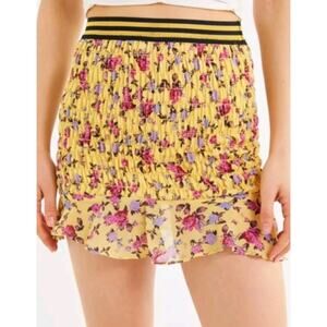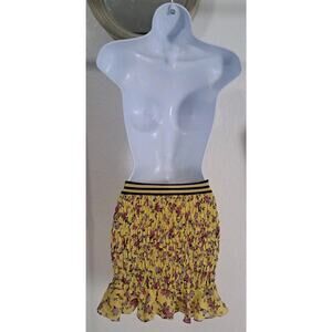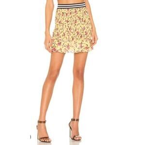 For Love & Lemons Silk Floral Odette Smocked Mini Skirt Sz M Yellow Peplum Ditsy