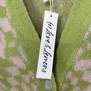 Wrap yourself in cozy charm with this For Love Lemons sweater vest. The vibrant green hue is beautifully contrasted with a playful tan houndstooth pattern, creating a look that's both eye-catching and effortlessly chic. Its soft, textured knit offers a luxurious feel against your skin, perfect for layering over your favorite blouses or tees. A classic V-neckline and button-front closure add a touch of timeless style. Imagine this vest adding a pop of personality to your everyday outfits or elevating your ensemble for a casual brunch or a stylish outing with friends.