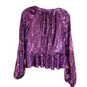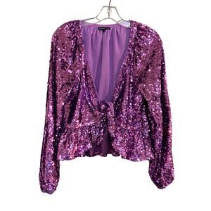 For Love & Lemons Size Small Purple Sequin Tie Front Madeline Sequin Top