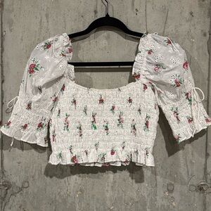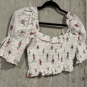 For Love & Lemons Size Small White Eyelet Floral Cottage Boho Romantic Crop Top
