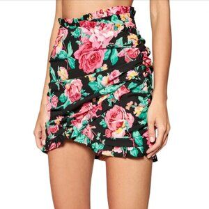 For Love & Lemons Skirt Womens Size Medium Becca Floral Colorful Ruching Buttons