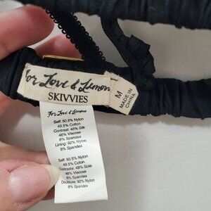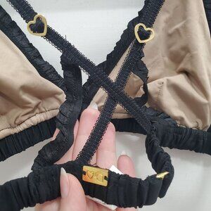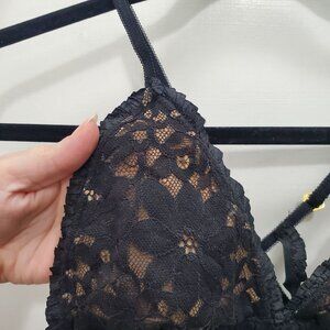 For Love & Lemons Skivvies Sage Lace Bra Black Tan Wireless Triangle Bralette M