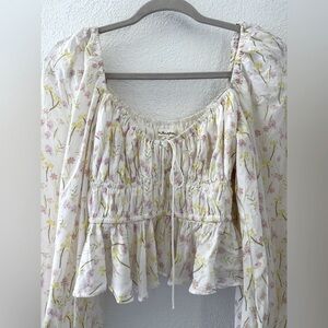 For Love & Lemons Smocked Crop Floral Puff Long Sleeve Blouse Size L