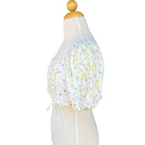 For Love & Lemons Strudel Floral Blouse Puff Sleeve Polka Dot Cropped Smocked LG