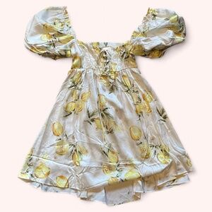 For Love & Lemons Sunny Lemon Serafina Puff Sleeve Summer Mini Dress NWT Size S