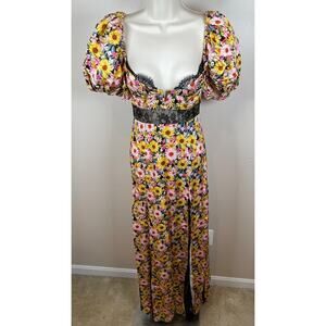 For Love & Lemons Sylvia Floral Puff Sleeve Lace Bustier Maxi Dress Size XS