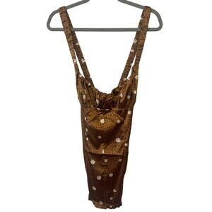 For Love & Lemons Tawney Mini Dress Elastic Strap Satin Cheetah Daisy Tan Large