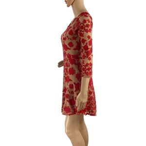 For Love & Lemons mini dress, Temecula dress, red floral mesh dress, embroidered party dress, bow back mini dress, sheer sleeve mini dress, nude and red dress, fit and flare mesh dress, wedding guest mini dress, holiday cocktail dress