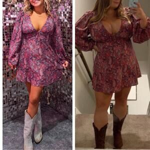 For Love & Lemons Tonya Paisley Star Long Puff Sleeve Mini Dress Plus Size 1X