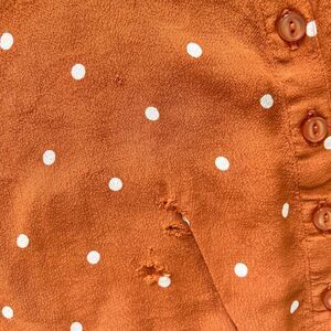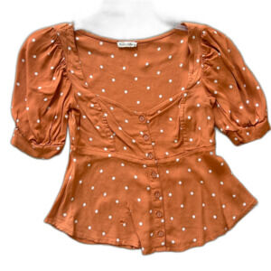 For Love & Lemons Top Blouse Orange Polka Dot Short Sleeve Fall Designer V neck
