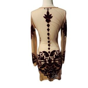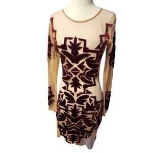 For Love & Lemons Vienna Mini Dress Womens M Burgundy Velvet Burnout Mesh Sheer