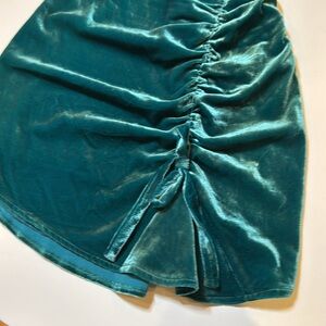 For Love & Lemons Viva Velvet Teal Mini Dress Cross Open Back