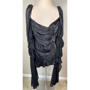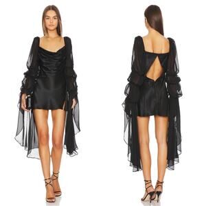 For Love & Lemons Willow Dramatic Long Sleeve Ruched Black Mini Dress Size Small