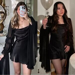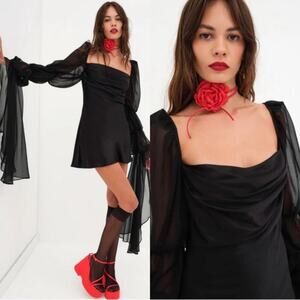 For Love & Lemons Willow Dramatic Long Sleeve Ruched Black Mini Dress Size Small is brand new with tags!