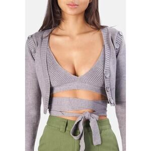 For Love & Lemons Women’s Joann Cropped Convertible Cardigan Set Sz M