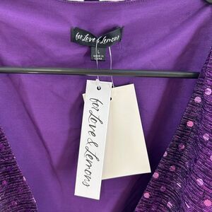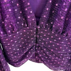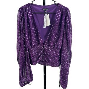 For Love & Lemons Womens L Purple La Vilette Metallic Puff Sleeve Top Plunge New