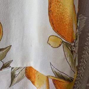 Such a cute For Love & Lemons Limonada skirt with yellow-orange lemon pattern and ruffle layer bottom. There is a tiny bit of discoloration barely noticeable on bottom of skirt in back, see last picture. So beautiful!