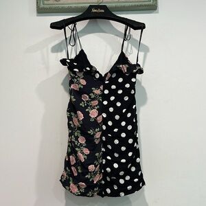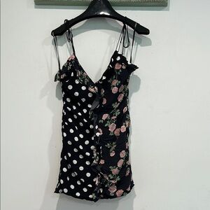 Stylish women's spring / summer mini dress featuring a unique floral and polka dot design. Women’s size small mini dress.
