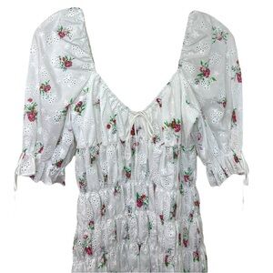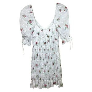 For Love & Lemons - Women’s ‘Tarte’ Eyelet Smocked Mini Dress - White, Small