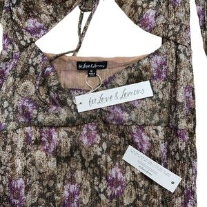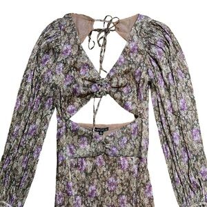 For Love & Lemons •Autumn Bouquet •Lurex Floral Fabric •V Neckline •Billowy Sleeves •Front & Back Cutouts •Drawstrings Tie Across Upper Back •Fully Lined •Shimmer •Metallic •Wedding Guest •Stretch ti Material •Cocktail •Party •Fall Festival •Side Seam Zipper