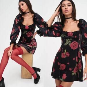 For Love & Lemons Yara Rose Floral Printed Velvet Long Sleeve Mini Dress Sz 2X is brand new with tags! Featuring: