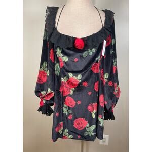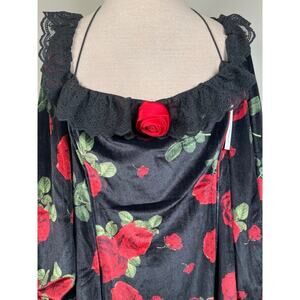 For Love & Lemons Yara Rose Floral Printed Velvet Long Sleeve Mini Dress Sz 2X