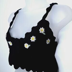 For Love & Lemons x Victoria's Secret Daisy Crop Tank Top Small Embroidered Boho