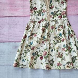 For Love & Lemons Beige Floral Sheer Mesh Flared Mini Skater Dress, women's size Small