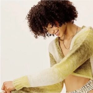 For Love & Lemons Celeste Twist Front Crop Sweater Yellow Green Cozy NWT Size S.
