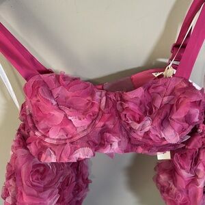 For Love and Lemons Autumn Crop Top in Pink Roses Puff Sleeve Satin Straps NEW