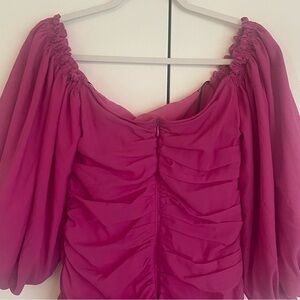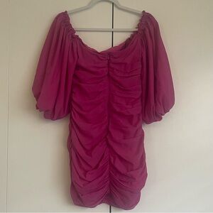 Step out in style with this elegant pink ruched dress. Perfect for any occasion, this dress features a flattering fit and bold color. Elevate your wardrobe with this must-have piece.