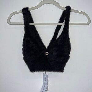 For Love and Lemons Black Devon Fuzzy Knit Crop Top size XS