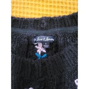For Love and Lemons Black Pink Floral Balloon Sleeve Flower Knit Crop Sweater S