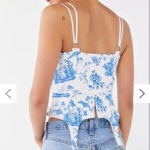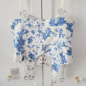blue toile top by For Love & Lemons. Corset style. Cropped length.