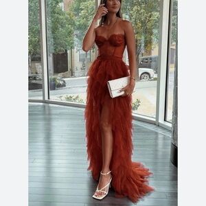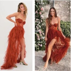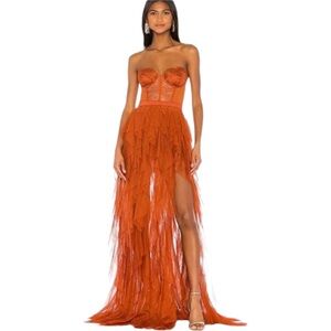 For Love and Lemons Bustier Gown Maxi Dress Corset Rust Orange
