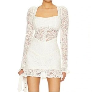 For Love and Lemons Cleo Mini Lace Dress in Ivory Size XL NWT