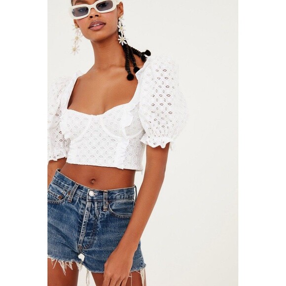 For Love and Lemons Corset Top Sand Dollar Lace Up Eyelet Top Underwire Bohemian
