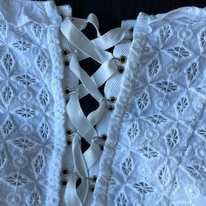 For Love and Lemons Corset Top Sand Dollar Lace Up Eyelet Blouse Underwire Boho