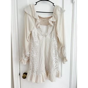 For Love and Lemons Crema Silk Linen Dress in Off White Size Medium