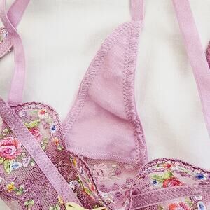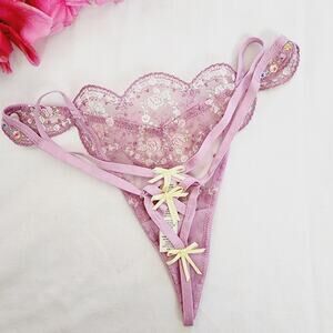 For Love and Lemons Daphne Purple Floral Lace Thong Panty XXS NWOT Lingerie
