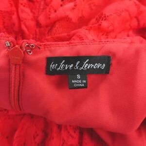 For Love and Lemons Dress Womens Small Red Mini Lace Floral Ruched Della. Current style on the Revolve site for $198. Note, dress has a flower pin that is removable as pictured. Dress is in excellent, like new, pre-owned condition, no stains, tears, or signs of wear noted, please review all photos. See photos for measurements. Thanks for visiting!