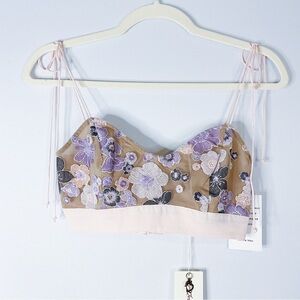 For Love and Lemons crop tank. Ties at shoulders. Hook and eye closure at back.