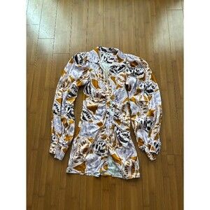 For Love and Lemons Esmeralda Mini Dress Long Ballon Sleeves Button Front Small