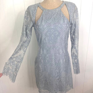 For Love and Lemons Eternal Love Lace Mini Dress in Powder Blue SZ M