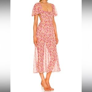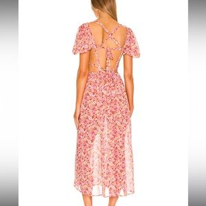 For Love and Lemons Felicia Floral-Print Tie-Back Midi Dress in Red NWT