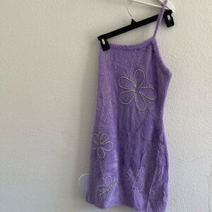 For Love and Lemons Finley Purple Fluffy Floral One Sleeve Mini Dress Size M