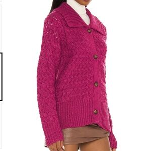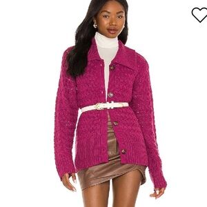 Brand new For Love and Lemons Florence Cardigan. Front button closures. Over-sized collar. Midweight chunky knit. Color is Pink